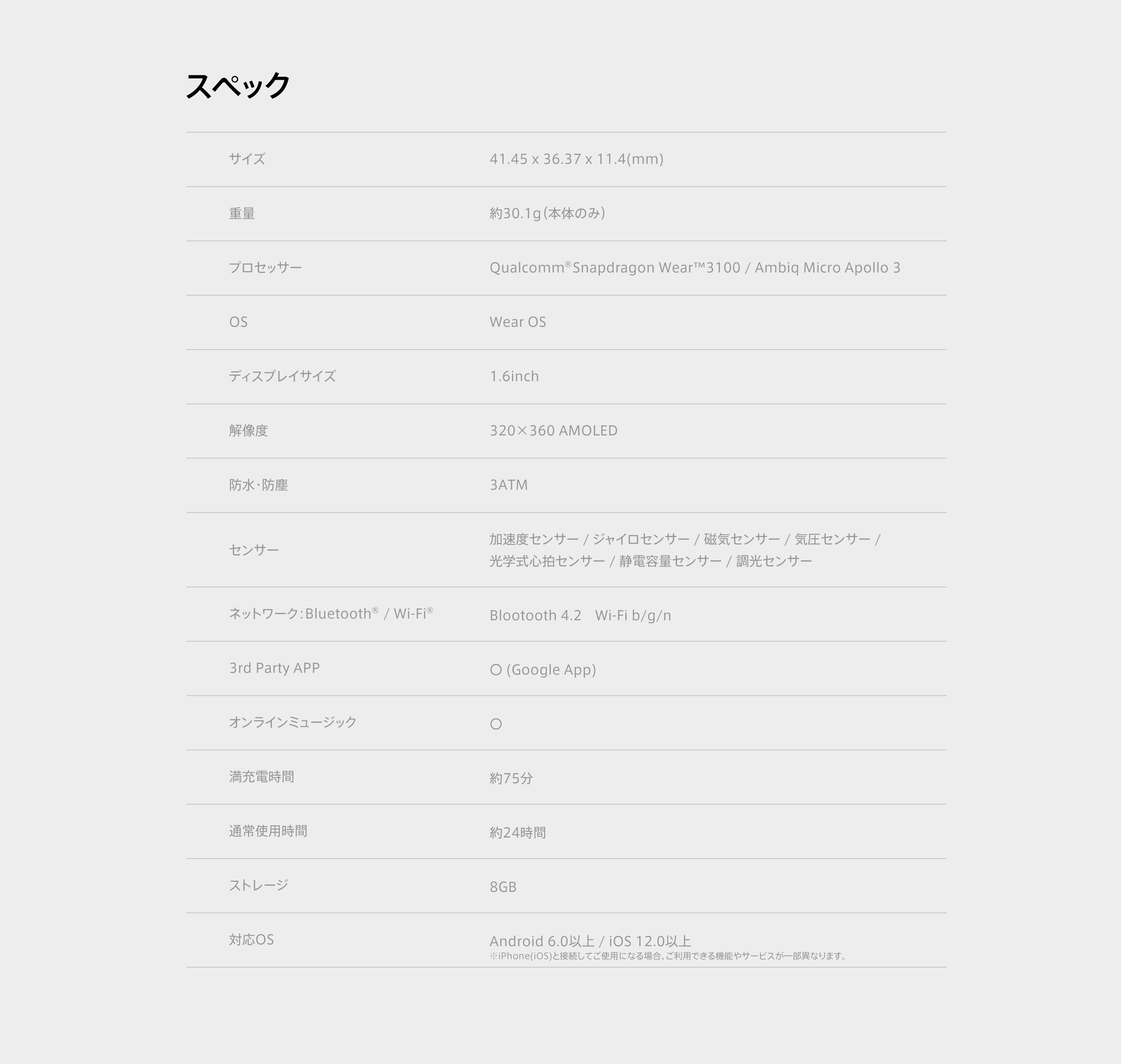 OSにはWear OSを採用し、Google Playから4000以上のアプリをダウンロードして利用することができます。