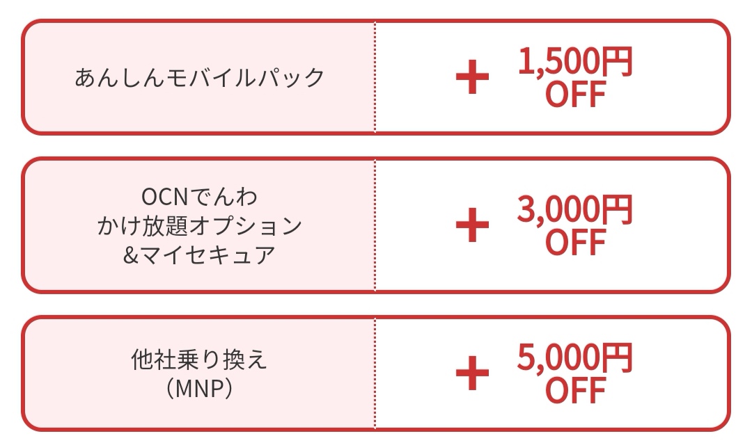 下図のようにオプションに加入したりや他社から乗り換え(MNP)することにより、更に端末代金が割り引かれます。