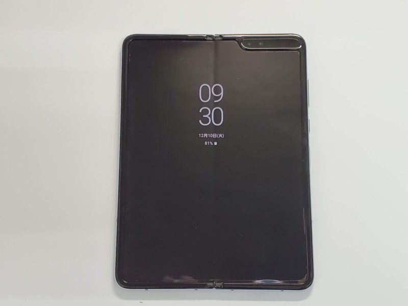 ご覧の通り、Galaxy Foldはヒンジ部分の方が厚みがあるため、閉じた状態では上下の二面が水平になりません。