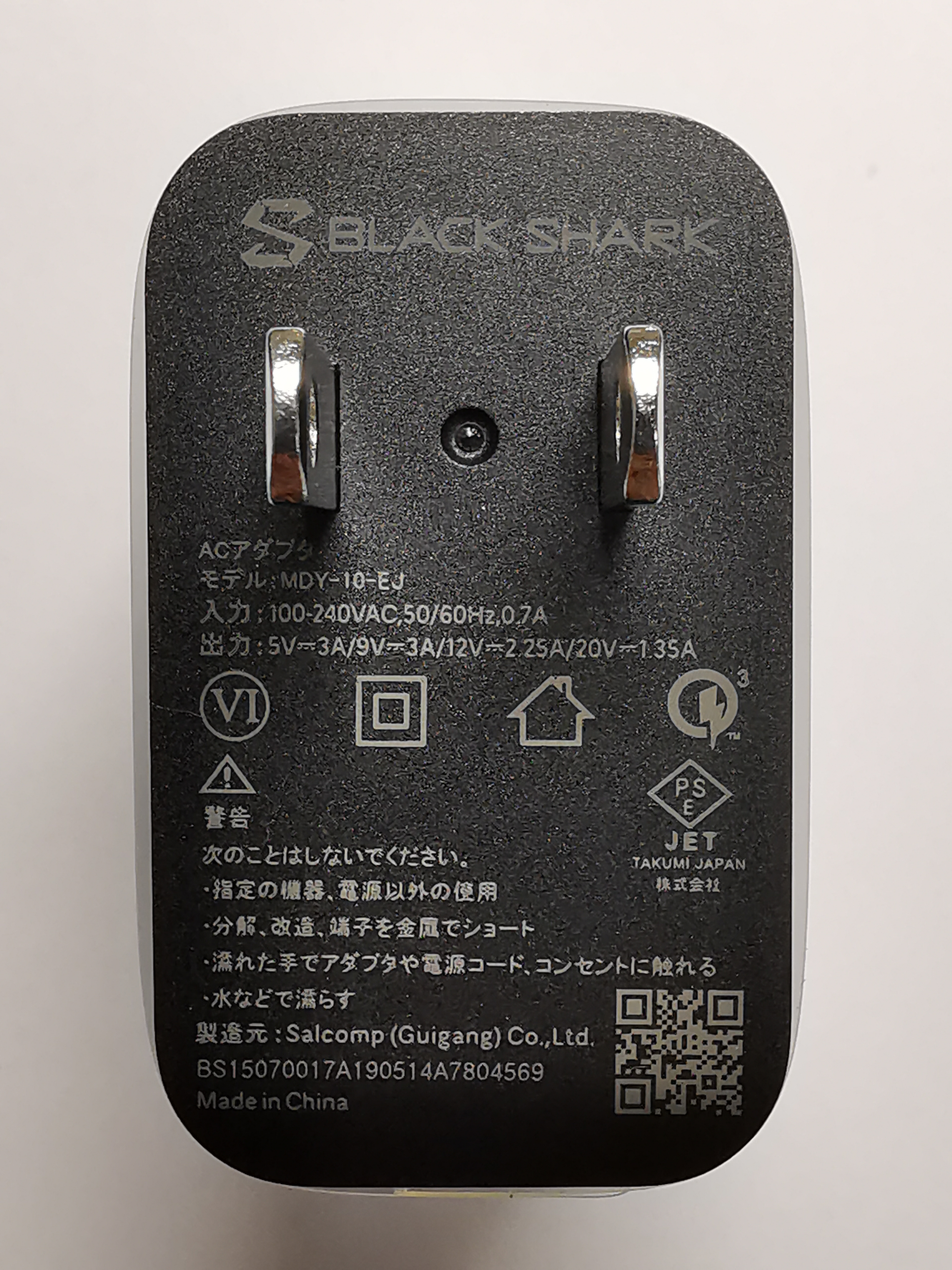 Black Shark 2はQuick Charge 4.0に対応しているはずですが、充電器には「3」の文字記載されています。