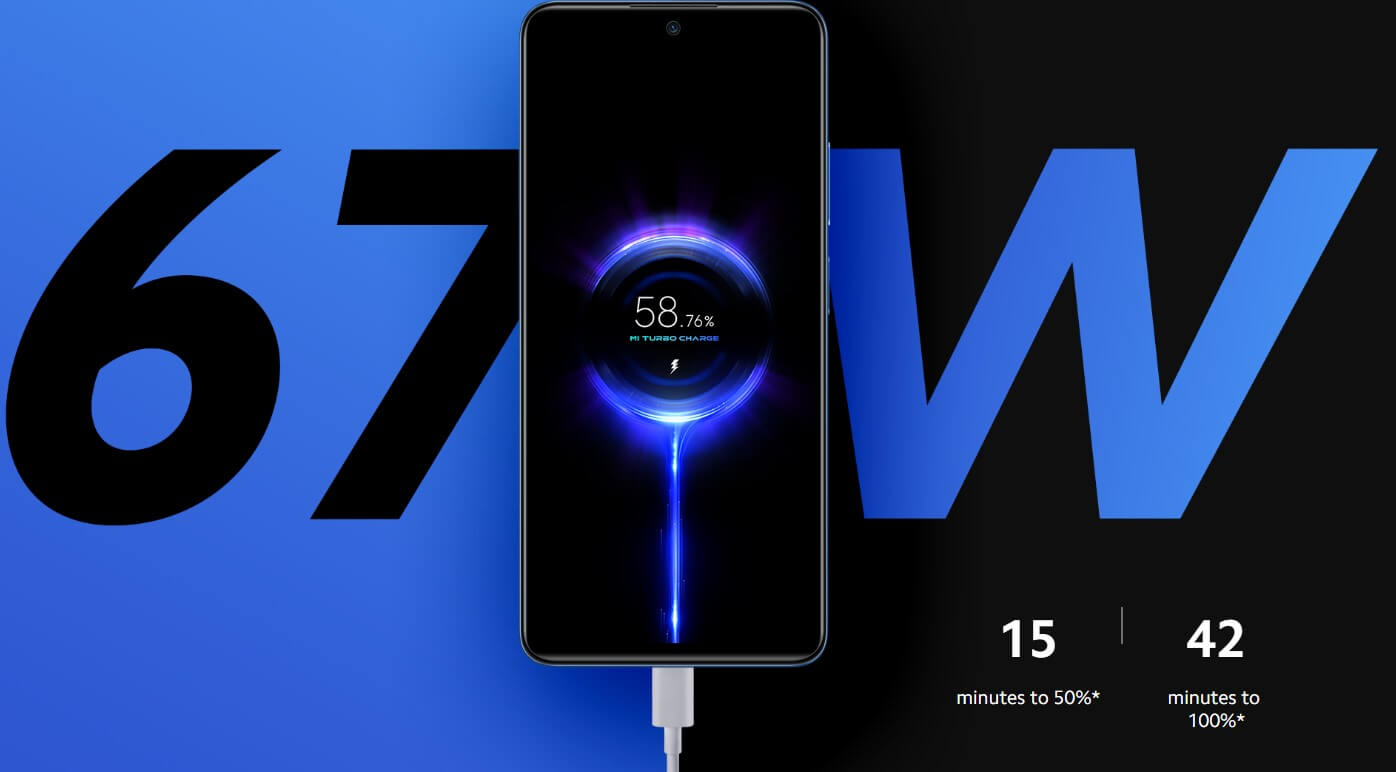 67Wの超急速充電に対応し、15分で50%、42分で100%充電が可能です。